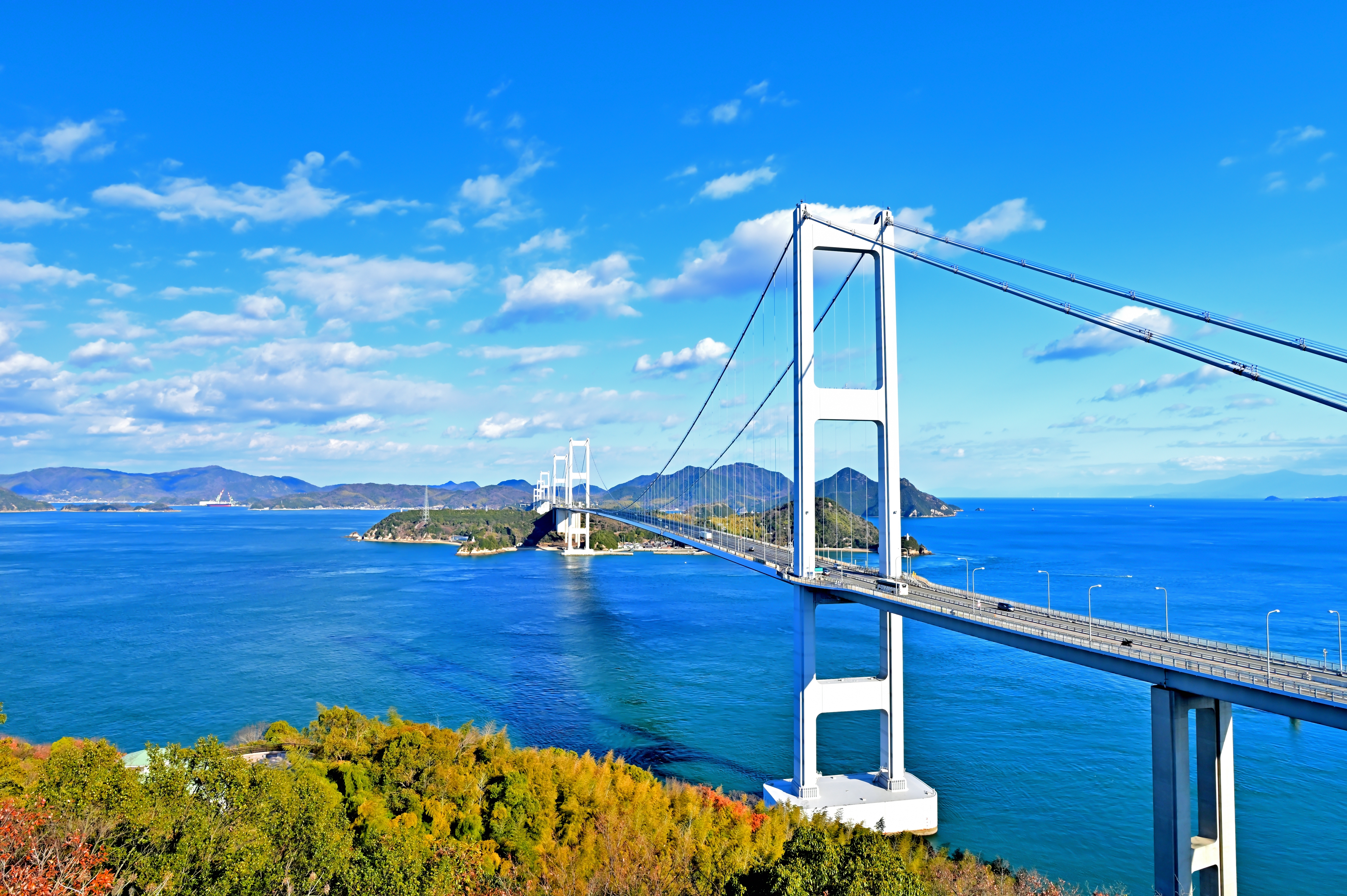 The Shimanami Kaido is a scenic route connecting Imabari City in Ehime and Onomichi City in Hiroshima.